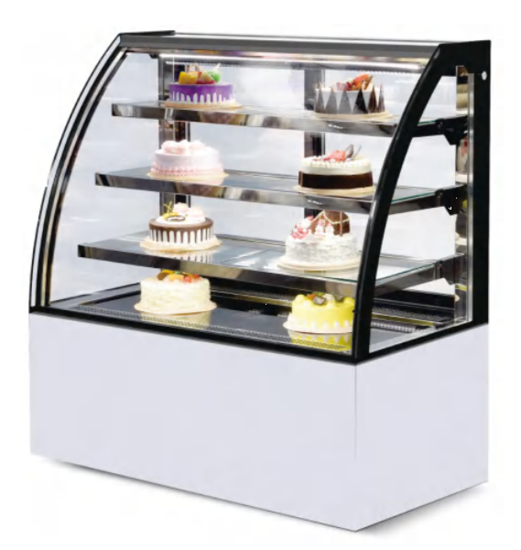 מקרר תצוגה רצפתי לעוגות/קינוחים/כריכים 3 קומות זכוכית ישרה 90/120/150 שחור מקרר תצוגה מרהיב – חזיתו ישרה זכוכיות מחוסמות בעובי 10