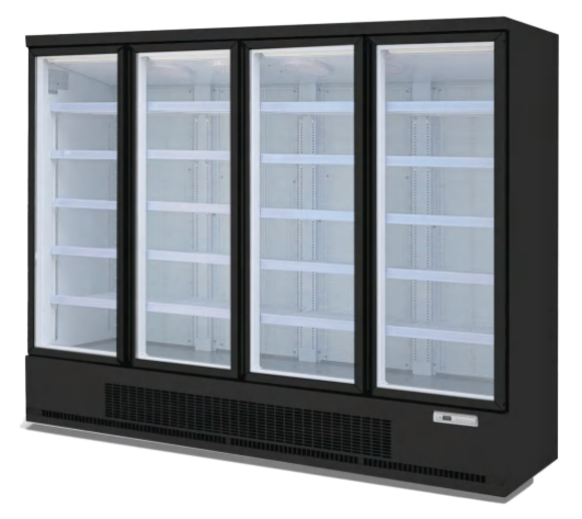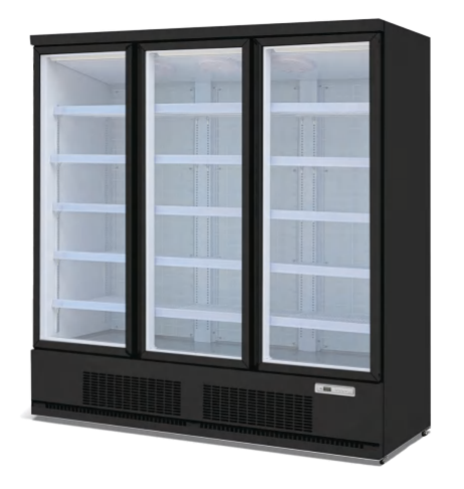 מקרר תצוגה מרהיב – חזיתו ישרה זכוכיות מחוסמות בעובי 10 מ"מ בעל 3 קומות תצוגה תחתית נירוסטה בליטוש – מראה
